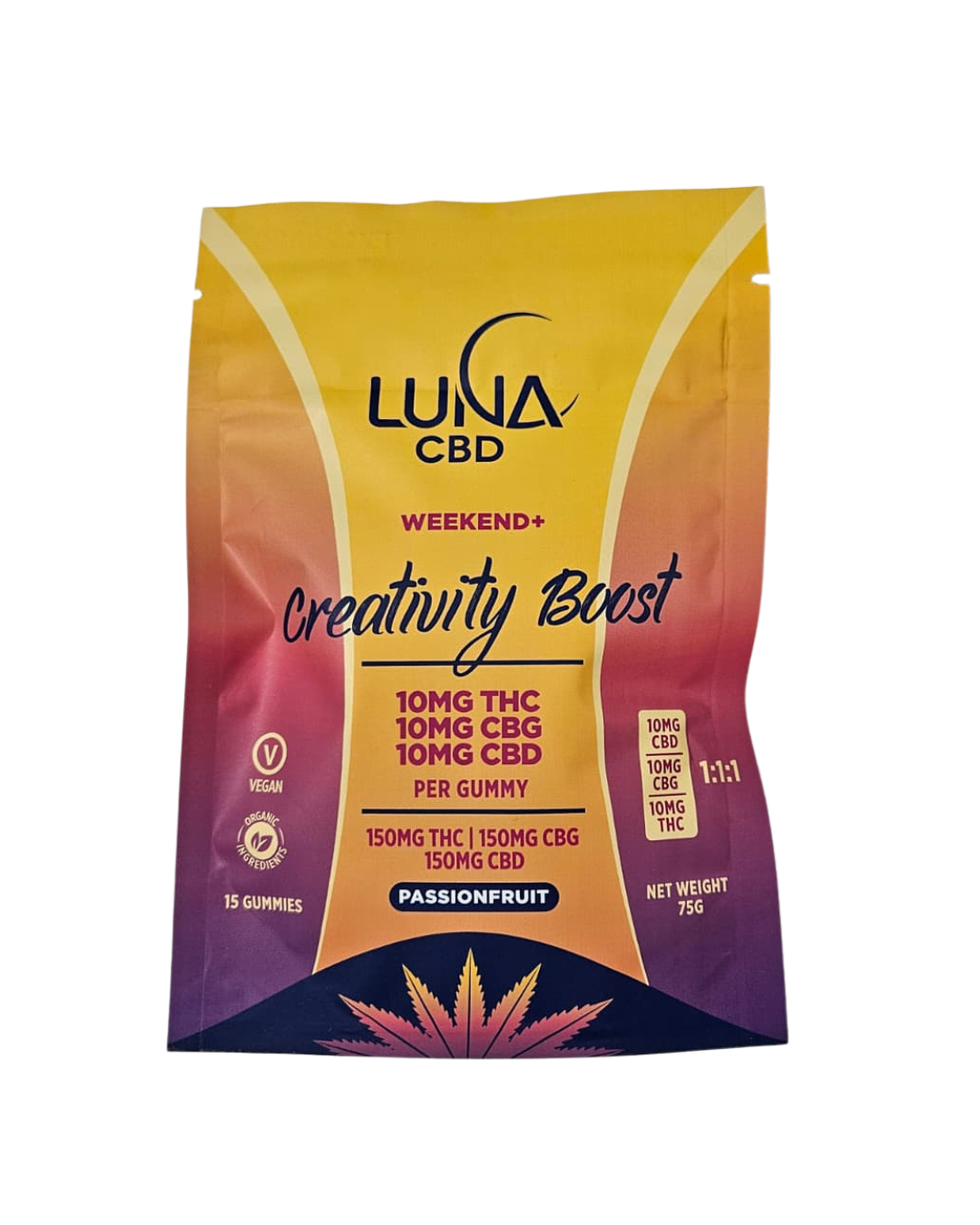 Luna Weekend+ CREATIVITY BOOST D9 THC + CBG Gummies, Peach, 10mg:10mg, 15ct