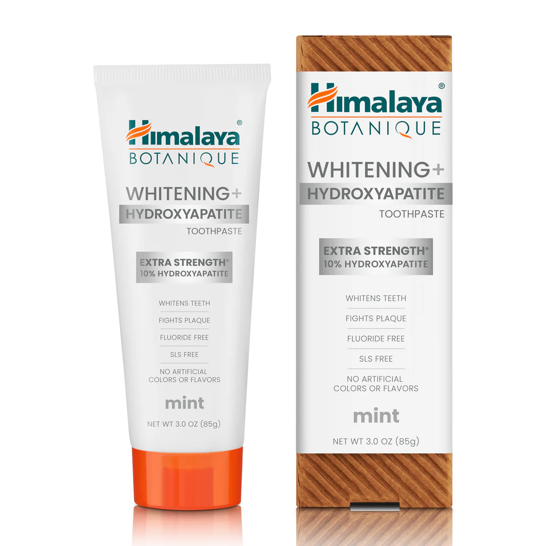 This extra-strength toothpaste delivers fluoride-free whitening and enamel support using plant-based hydroxyapatite—the same mineral that makes up tooth enamel. Spearmint and peppermint oils freshen breath, while papaya and pineapple enzymes gently lift surface stains. It also features neem and pomegranate extracts to help maintain healthy gums and reduce plaque. Vegan, gluten-free, SLS-free, and free of artificial additives, it's ideal for those seeking a natural, science-backed boost in oral hygiene.