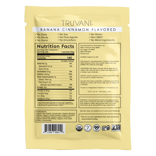 Truvani Banana Cinnamon Plant Protein Powder, Box of 10