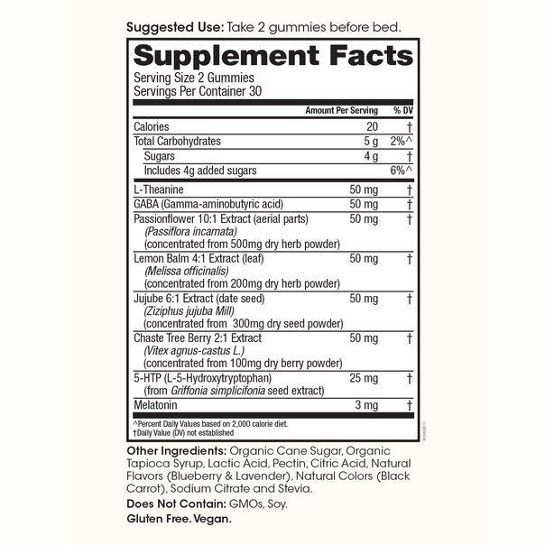 Calming herbs Passionflower and Jujube help gently nudge you to sleep while Lemon Balm is added to quiet the mind and reduce anxiousness, so racing thoughts won’t disrupt your slumber.